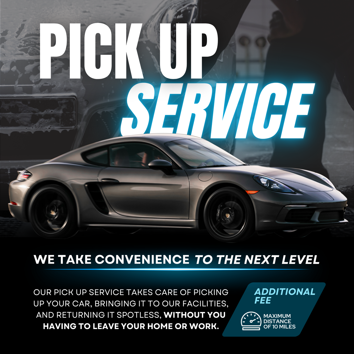 Choose Local Pickup at Checkout, and we will collect your vehicle from your home to bring to our facilities, leave it shine and bright, and return it safely.